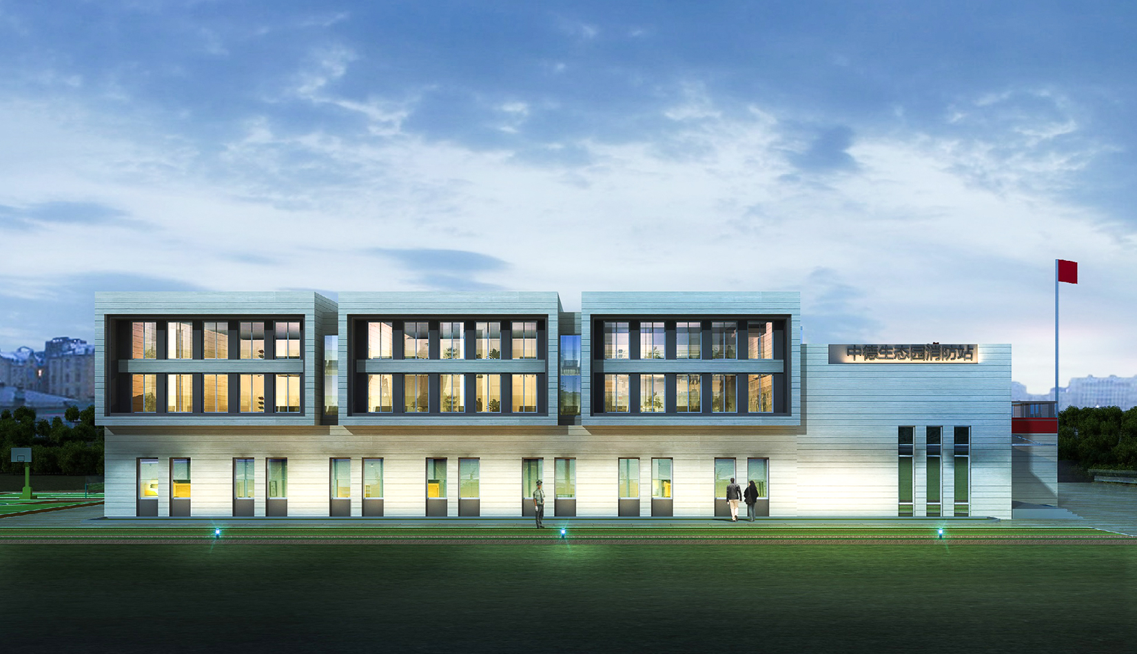 本消防站設(shè)計(jì)以適用、經(jīng)濟(jì)、綠色、美觀為基本設(shè)計(jì)原則,以完善平面功能,提高工作生活質(zhì)量為根本,致力于打造風(fēng)格現(xiàn)代、功能完善的消防站。