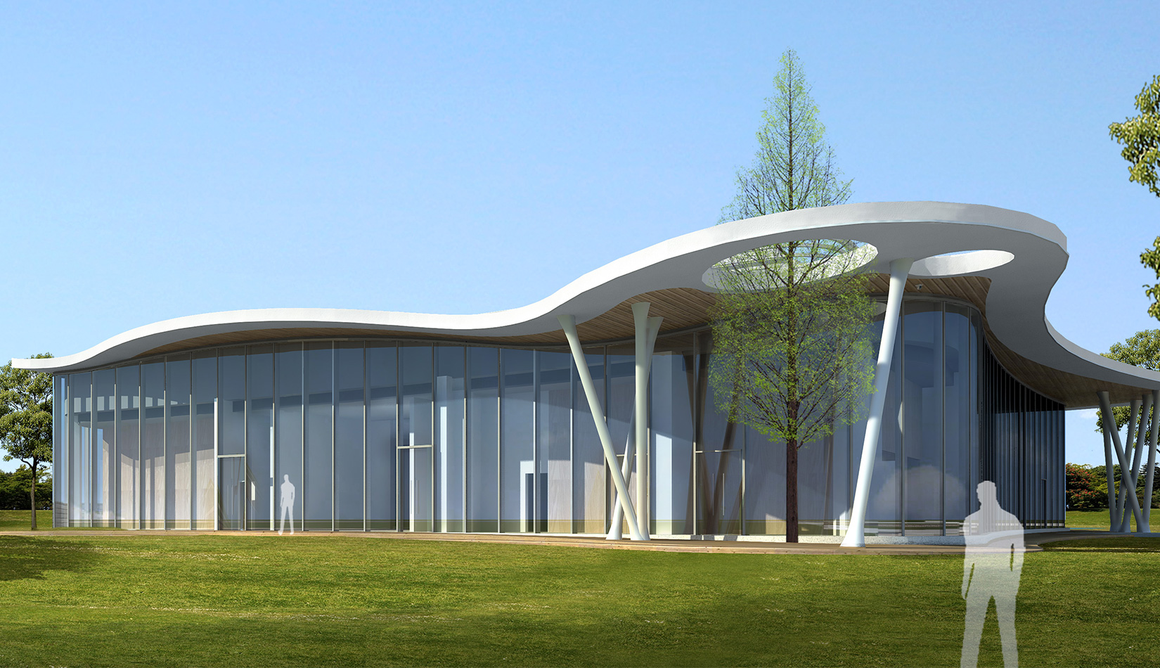 該項目以“森林中的小屋”為理念,通過“自由流水形態(tài)的木質屋頂加純凈的玻璃幕墻”的組合,從而達到建筑與自然的共生,使得建筑真正的融合于自然風景之中。設計師將節(jié)能、