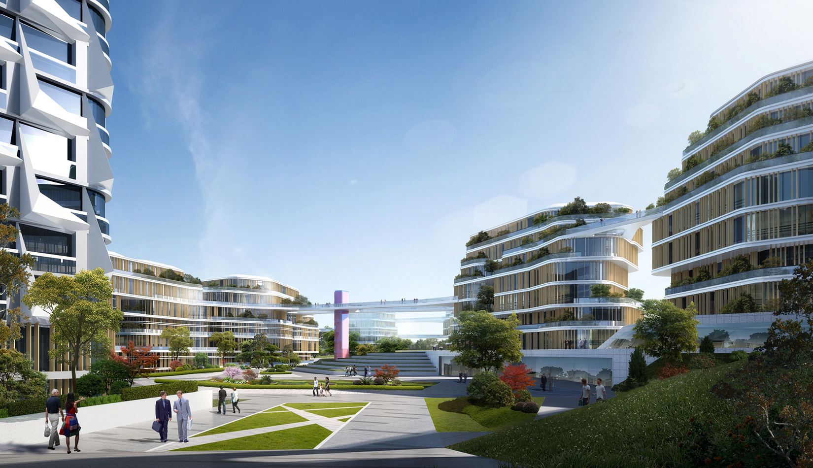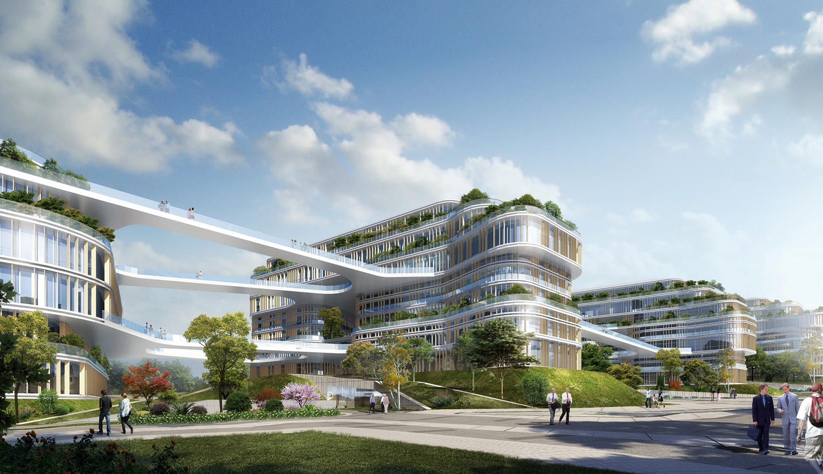 該項目以“流動的星云”作為設(shè)計理念,順應(yīng)地形走向,溝通“山”“水”關(guān)系。