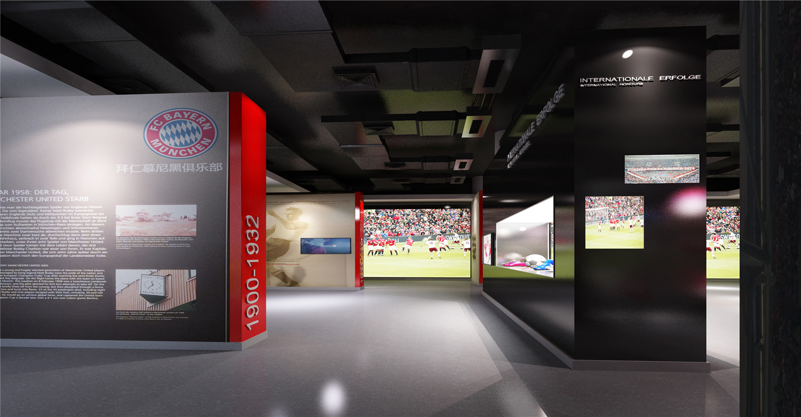 本次設(shè)計(jì)方案運(yùn)用后現(xiàn)代主義風(fēng)格的設(shè)計(jì)手法來展現(xiàn)中德兩國足球運(yùn)動(dòng)的歷史及發(fā)展。迎合當(dāng)前環(huán)境下中德兩國在足球產(chǎn)業(yè)方面進(jìn)行的交流與合作,是中德體育促進(jìn)足球培訓(xùn)、商務(wù)推廣的窗口平臺(tái),向人們展示足球精神的人文內(nèi)涵與魅力。